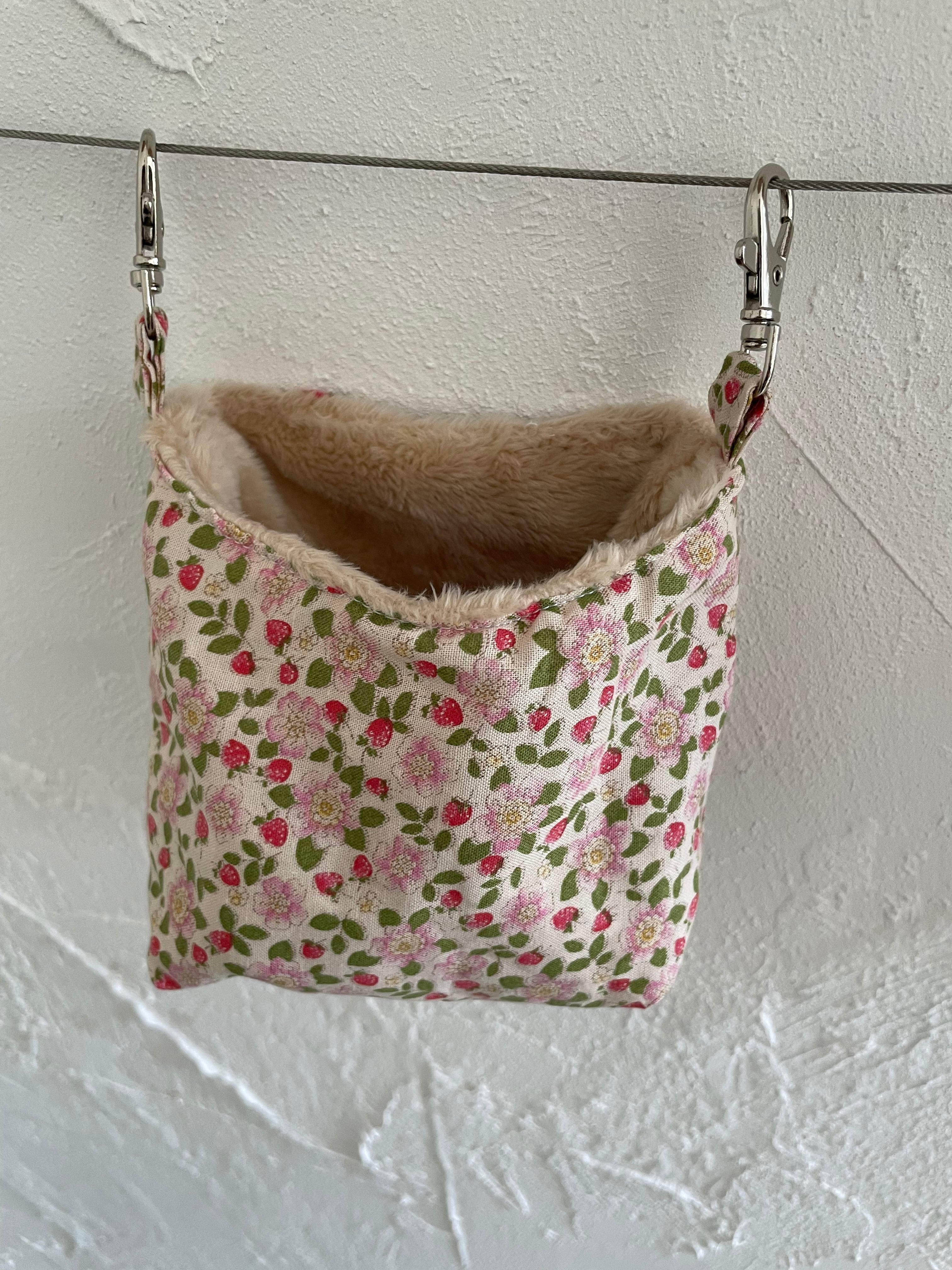モモンガポーチマチ付きイチゴ花柄ボア茶色1〜2匹用